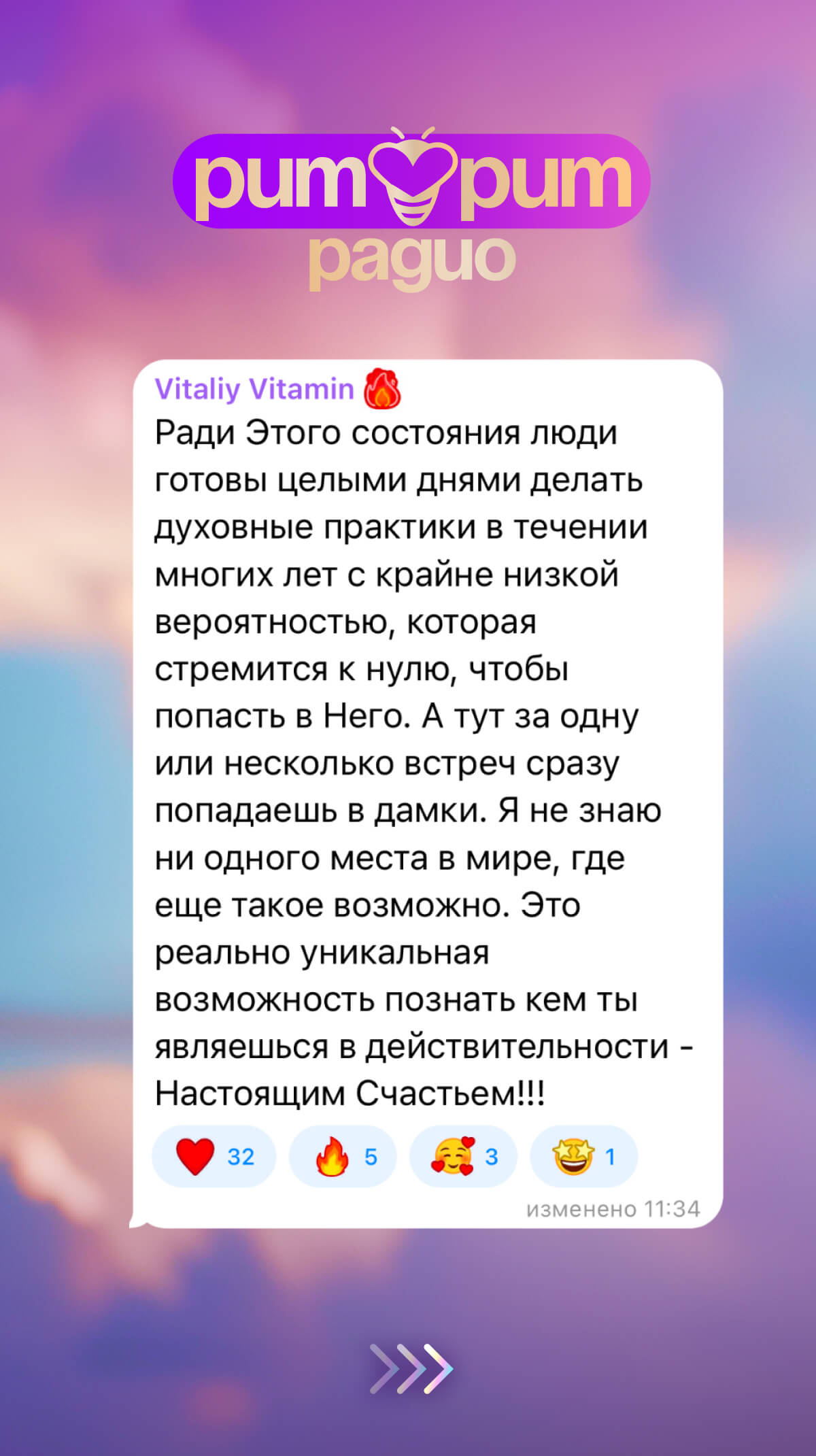 А когда ты находишь себя разочарованным, ты начинаешь искать истину. Вот эту истину вы познаете за одно мгновение на любом Эфире, из которых состоит этот Ритрит